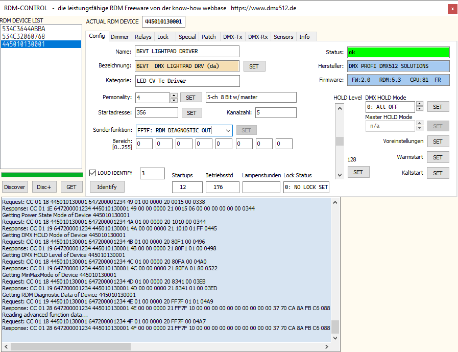 Ein universeller DMX RDM Controller zur Konfiguration von RDM Devices.